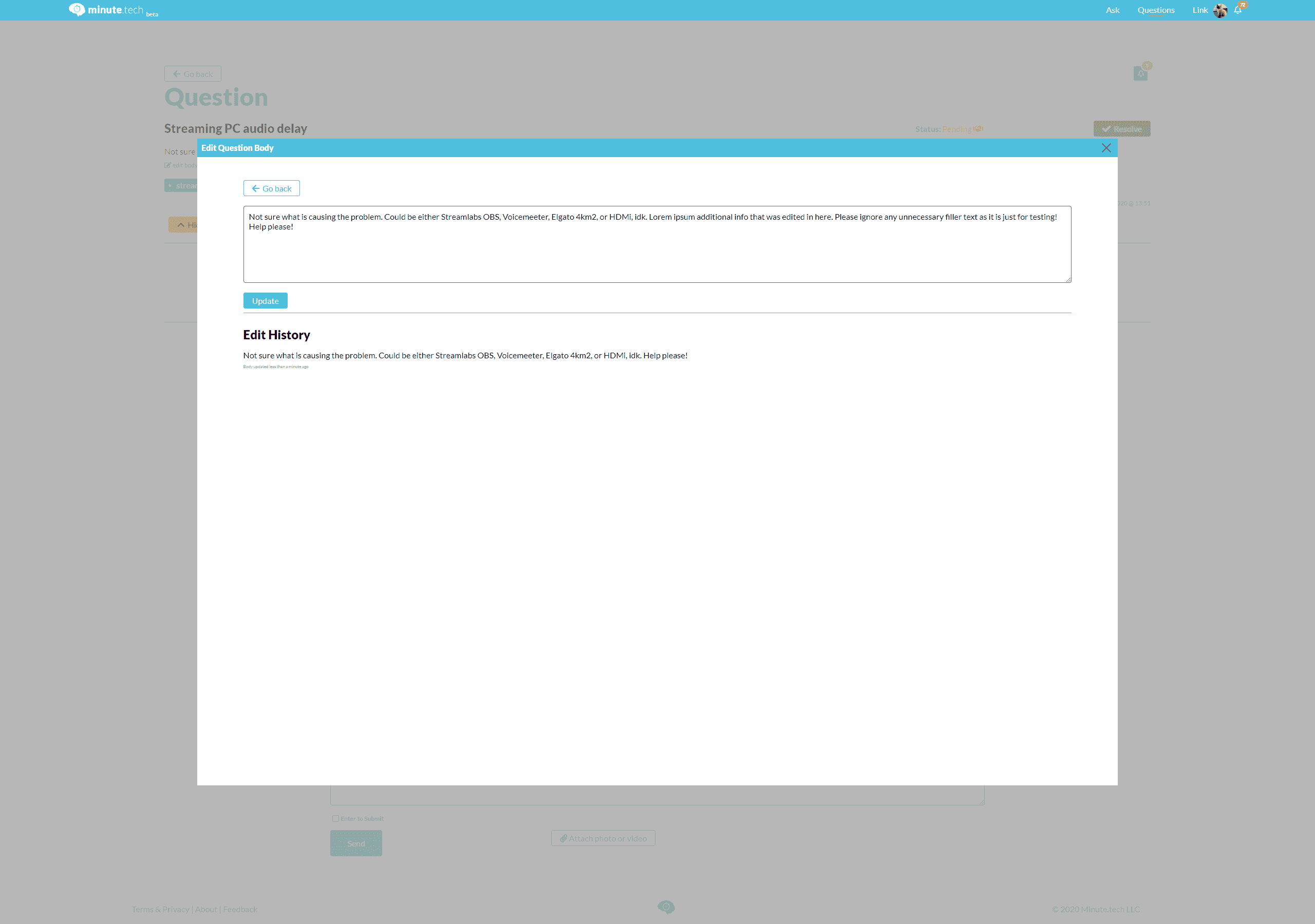 Minute.tech LLC began as a software solution to connect clients with tech questions to qualified technicians for everyday support—think GeekSquad meets Uber. The platform allowed users to communicate via real-time messaging, voice/video calls, screen sharing, and scheduling, with built-in review and payment systems. It aimed to lower the barrier for non-techies and techies to collaborate, particularly during the pandemic, when socially distanced solutions were essential.